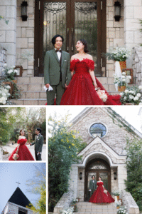 ご結婚式当日では残せないカラードレス&教会のお写真。